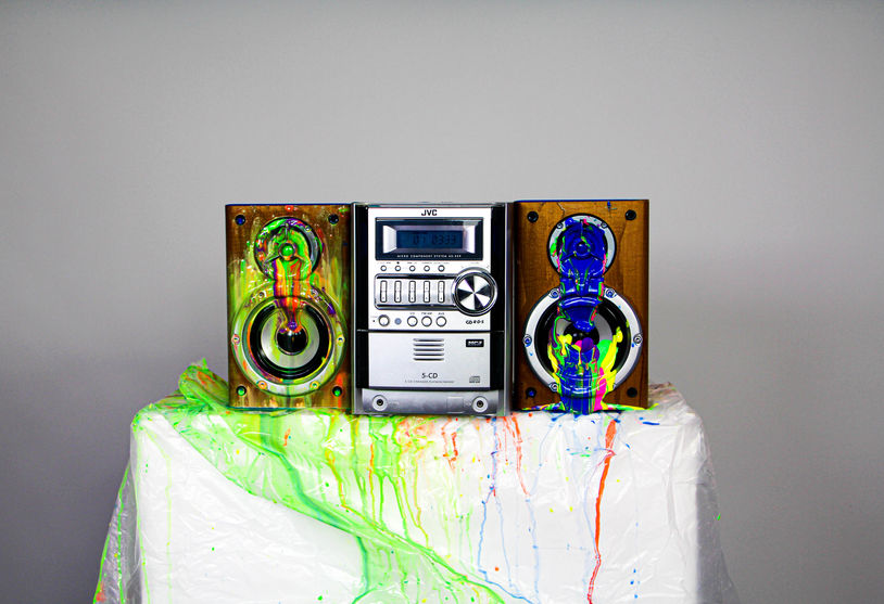 My movement project explores the visualisation of sound and the documentation of this. I explored several artists which have previously documented movement or used visualised something. My main focus was to capture music in a form which isn’t expected, by photographs of the waves created by the driver of the speaker being filled with a mixture of neon acrylic paint and water producing significant patterns and shapes. Inspired by Martin Kilmas